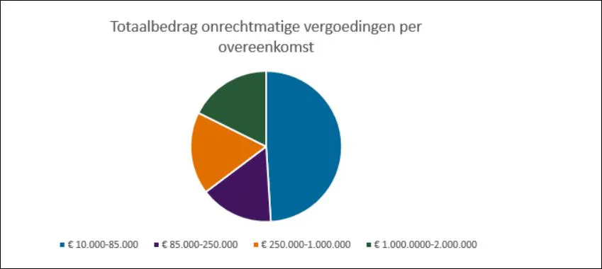 De hoogte van de verboden vergoedingen van tabaksfabrikanten aan supermarktketens varieert van €10.000 tot circa 2 miljoen euro per jaar, aldus de voedsel en tabakswaakhond. De fabrikanten kunnen nu een boete tegemoet zien. De hoogte van de bestuurlijke boete is wettelijk vastgesteld op €45.000 en kan bij herhaalde overtreding oplopen tot €450.0000. Iedere verboden overeenkomst telt hierbij als een aparte overtreding.