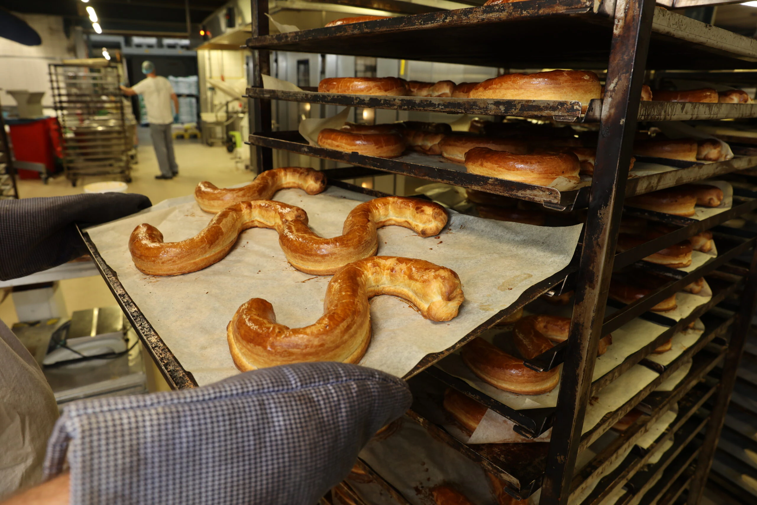 Vervolgens krijgen de staven rust, zodat de eventuele spanning uit het deeg trekt en het eistrijksel kan drogen. De roomboteramandelletters van Bakker Klootwijk zijn al jaren eyecatchers in de 35 eigen winkels en het derde kanaal.